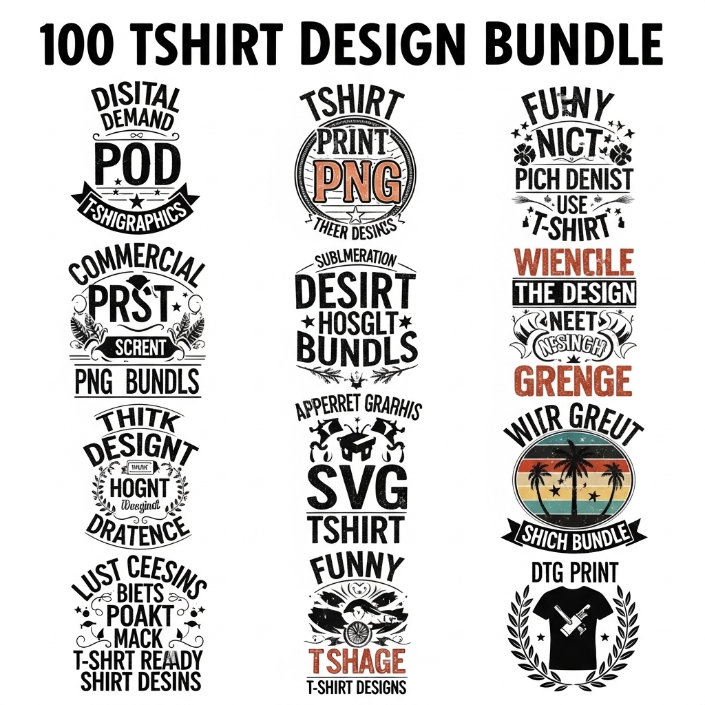 The 100 T-Shirt Design Bundle is a professionally curated collection of high-resolution, print-ready T-shirt graphics created for entrepreneurs, print-on-demand sellers, and apparel businesses. This bundle saves time and money by providing a diverse variety of trendy, evergreen, and niche-friendly designs ready for immediate use.
