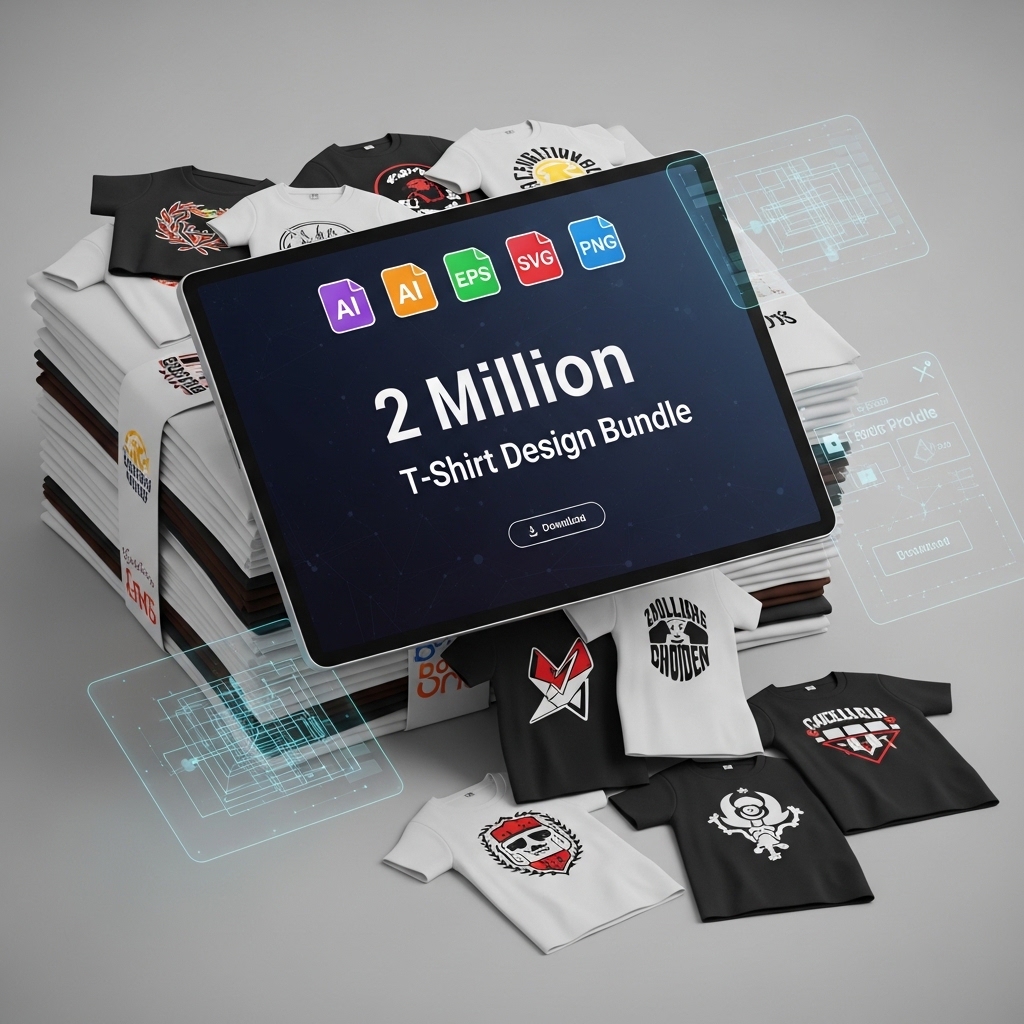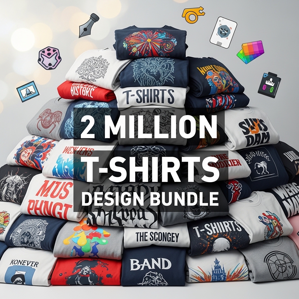 The 2 Million T Shirts Design Bundle is a massive premium digital collection of ready-to-use, print-ready T-shirt designs created for entrepreneurs, print-on-demand sellers, graphic designers, and apparel brands.